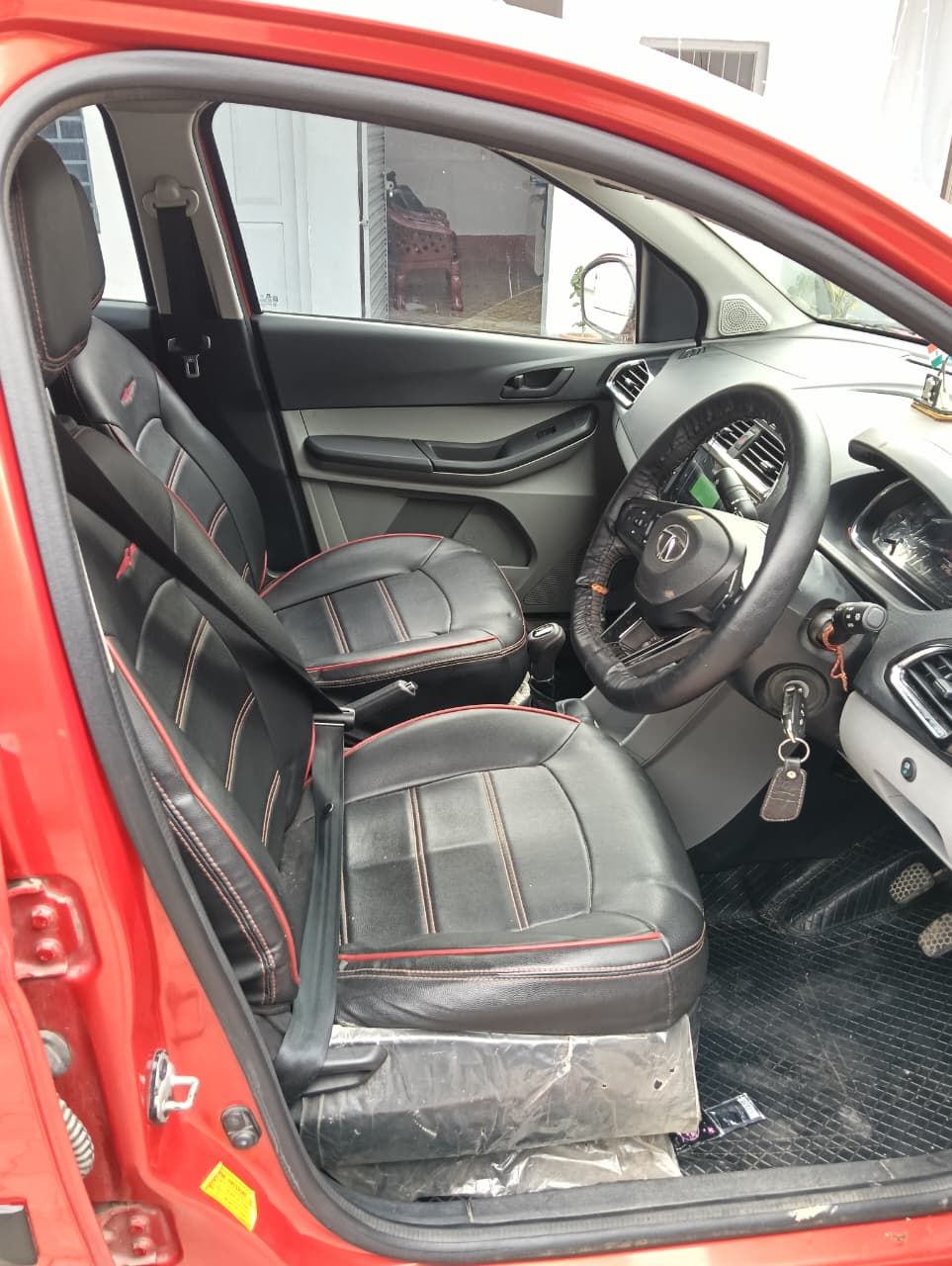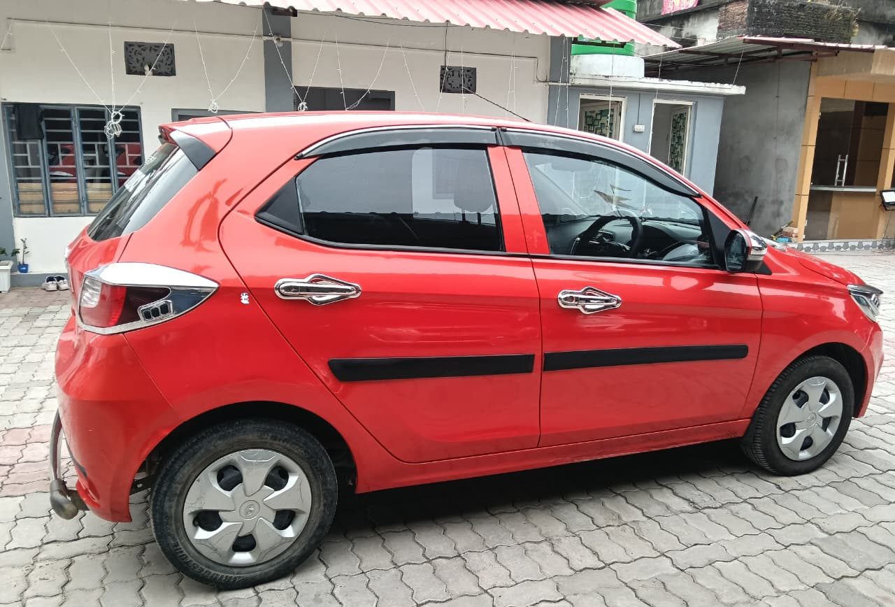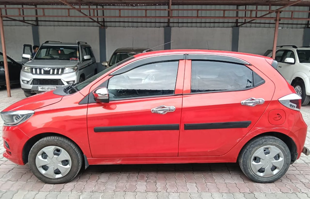Tata Tiago 1.2 Revotron XT is a stylish and practical 5-seater hatchback powered by a 1.2-litre 3-cylinder petrol engine that produces 84 bhp and 113 Nm of torque, paired with a 5-speed manual gearbox. It offers smooth city driving, good mileage of around 18–20 km/l, and a comfortable ride. The XT variant comes with features like a 7-inch touchscreen infotainment system, power windows, remote central locking, electrically adjustable mirrors, and steering-mounted controls. Safety is ensured with dual airbags, ABS with EBD, rear parking sensors, and a strong build quality. With its compact size, refined engine, and modern design, the Tiago XT is a great choice for daily commuting and family use.